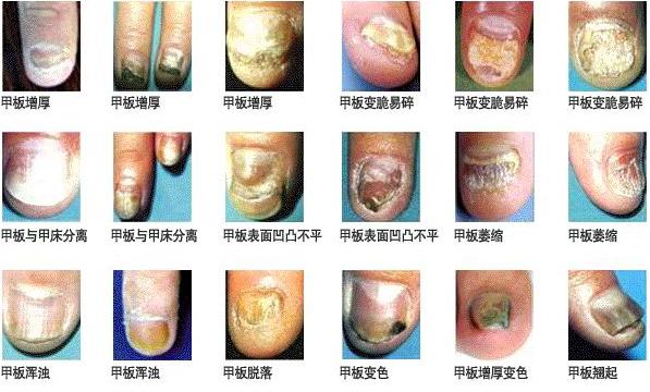 3、甲面凹凸不平:甲下角质堆积导致甲板破坏。