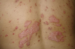 有6%的牛皮癣患者有咽部感染史。我们发现很多儿童的牛皮癣与扁桃腺炎有密切关系。例如有一位母亲和她的三个孩子同时患急性扁桃腺炎,病情控制后,有三个人发生了牛皮癣。摘除扁桃腺后,皮疹可有明显好转或消退,说明感染是牛皮癣发病的一个重要因素。